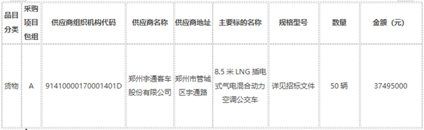 采购内容:8.5米LNG插电式气电混合动力空调公交车