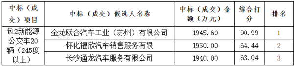 湖南省怀化公共交通集团有限责任公司新能源公交车中标公示