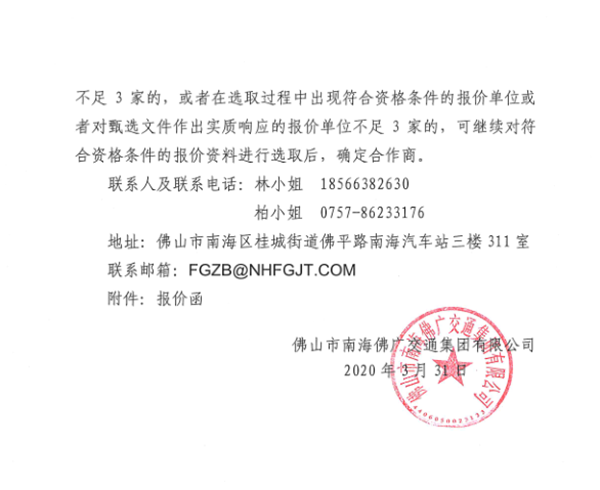 广东佛山南海佛广交通集团有限公司865台新能源公交车融资项目选取公告