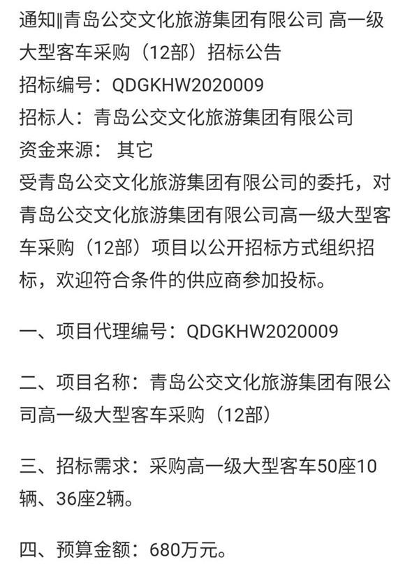 - 预算4.33个亿!珠海公交发布420辆纯电动公交车采购招标公告