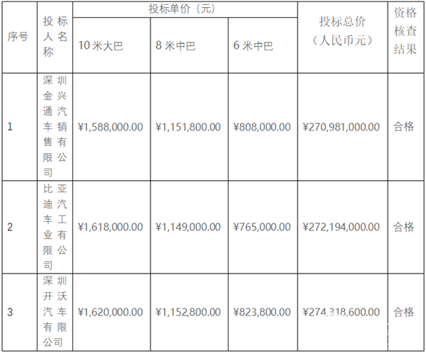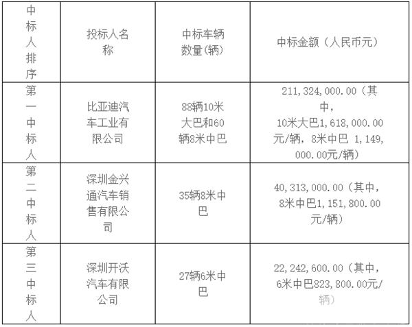 深圳市西部公共汽车有限公司2020年度210辆新能源营运车辆采购中标公告