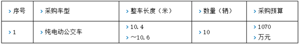 浙江乐清公交客运有限公司10.5米纯电动公交车公开招标公告