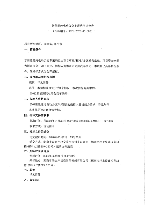 - 预算4.33个亿!珠海公交发布420辆纯电动公交车采购招标公告