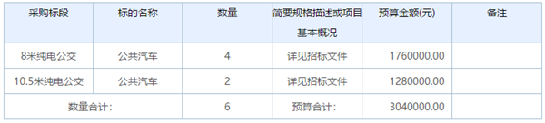 - 2025年购买30辆新能源纯电动公交车项目第一包中标结果公告
