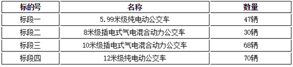 本次招标采购的公交车共215辆,分四个标段实施招标,各投标人可根据自己的生产和经营情况,选择一个或若干个标段进行投标。
