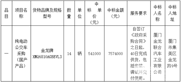 江西省信丰县城市公交公司纯电动公交车采购项目中标结果公告