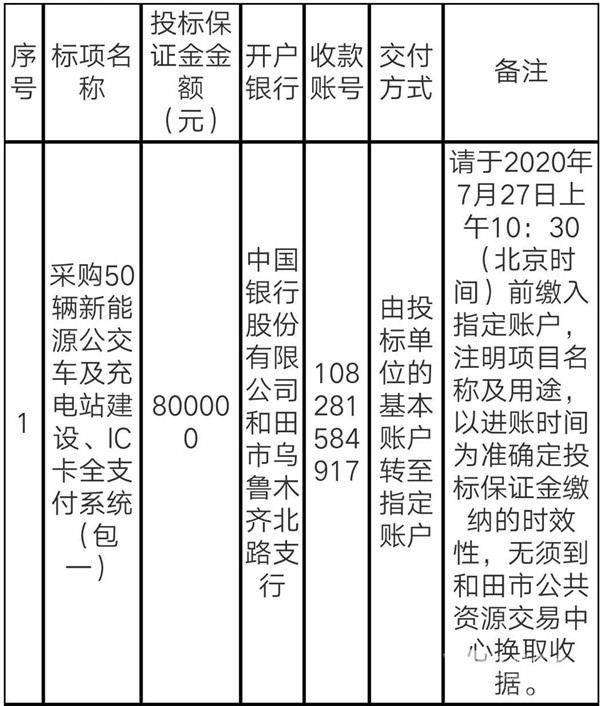 新疆和田玉城公交公司新能源公交车及充电站建设IC卡全支付系统招标公告
