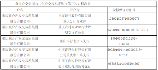重庆公交集团2019年公交客车采购(第三次)标段五