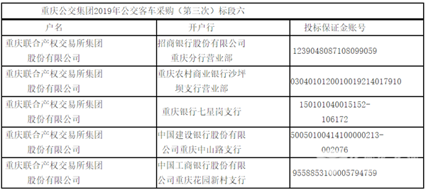 重庆公交集团2019年公交客车采购(第三次)标段六