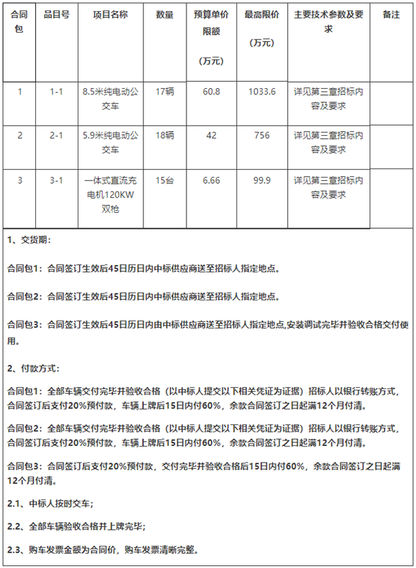 福建省福鼎市公交公司纯电动公交车辆及充电桩采购项目公开招标公告