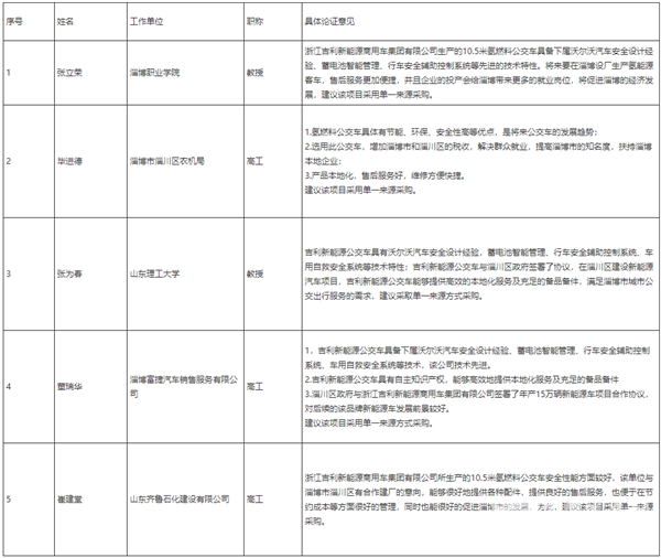 综合考虑吉利氢燃料公交车客车质量、售后服务、节能降耗、方便管理、供货要求等因素,该项目只能由淄博吉利新能源商用车发展有限公司进行供货,故本项目申请采用单一来源采购方式进行招标。