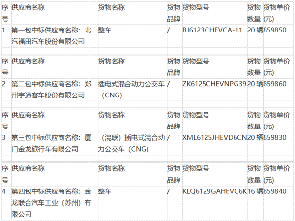 供应商名称:第四包中标供应商名称:金龙联合汽车工业(苏州)有限公司