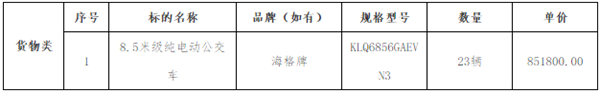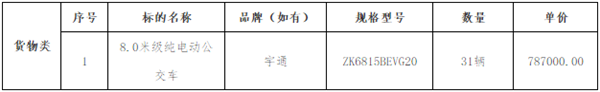 - 8米高一级纯电动公交车购置含电池购置及服务包采购中标(成交)结果公告