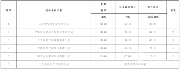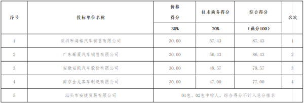 - 2025年营运客车采购(第一批)中标候选人公示表