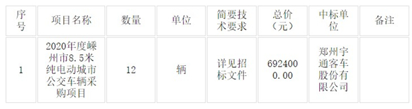 - 2025年购买30辆新能源纯电动公交车项目第一包中标结果公告