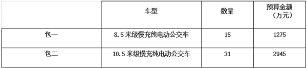 1、仪征市博润建材商贸有限公司计划购买46辆新能源公交车;其中,8.5米级慢充纯电动新能源公交车15辆,10.5米级慢充纯电动公交车31辆。投标人负责车辆生产、交付及车辆验收、与采购人沟通及协调。