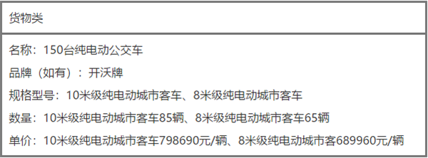 - 8米高一级纯电动公交车购置含电池购置及服务包采购中标(成交)结果公告
