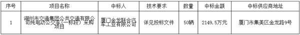 浙江省湖州市公交公司纯电动公交车(一标段)采购项目中标公告