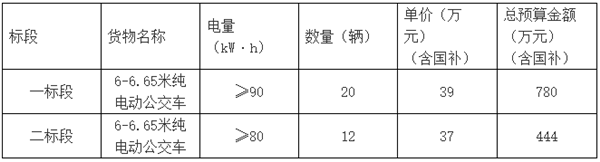 3、滨海交通控股集团计划购买共32辆公交车,其中6-6.65米纯电动公交车20辆、6-6.65米纯电动公交车12辆。各标段投标人负责各标段的车辆生产、交付及车辆验收、与招标人项目中的沟通及协调。