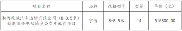 湖南省吉首市湘西乾城汽车运输公司新能源纯电动公交车采购项目中标公告