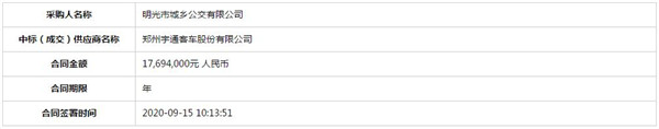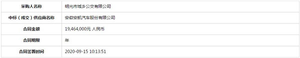 安徽省明光市城乡公交有限公司新公交车采购项目中标公告