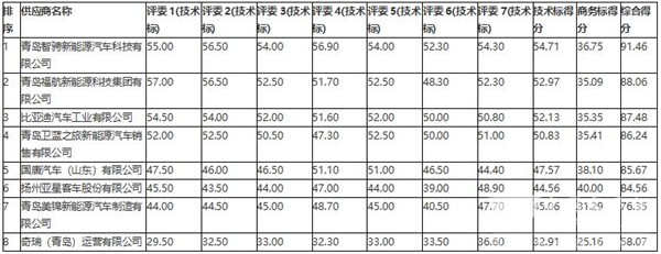 青岛市交通运输局2020年市区公交车辆更新项目中标公告