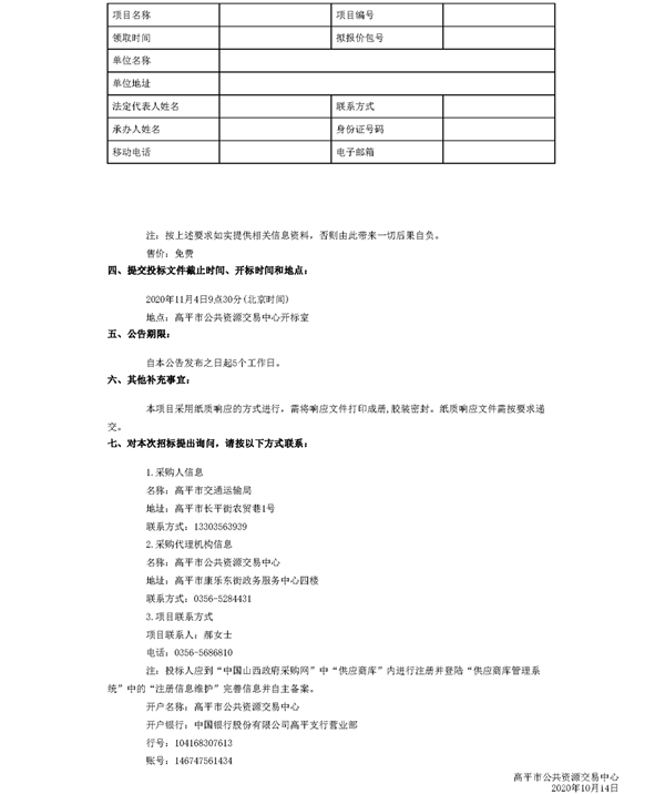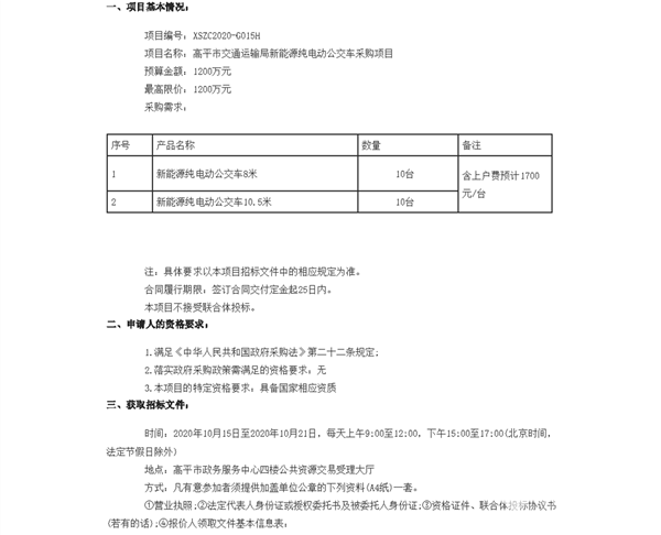 山西省高平市交通运输局新能源纯电动公交车招标公告