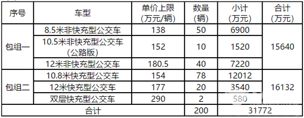 珠海公交巴士有限公司更新投放200辆纯电动公交车购置项目包组一中标公示
