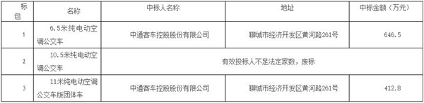 山东省潍坊市公共交通集团有限公司30台纯电动公交车采购中标公告