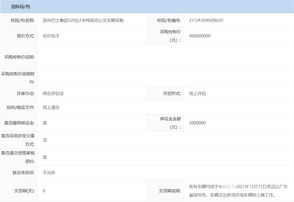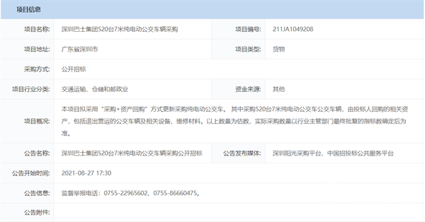 - 预算4.33个亿!珠海公交发布420辆纯电动公交车采购招标公告