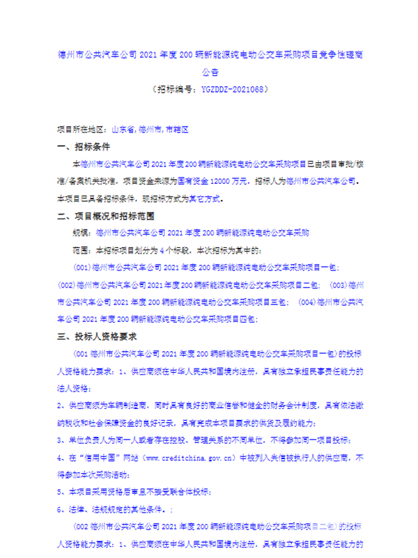 - 预算4.33个亿!珠海公交发布420辆纯电动公交车采购招标公告