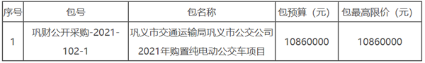 巩义市公交公司2021年购置纯电动公交车项目公开招标公告