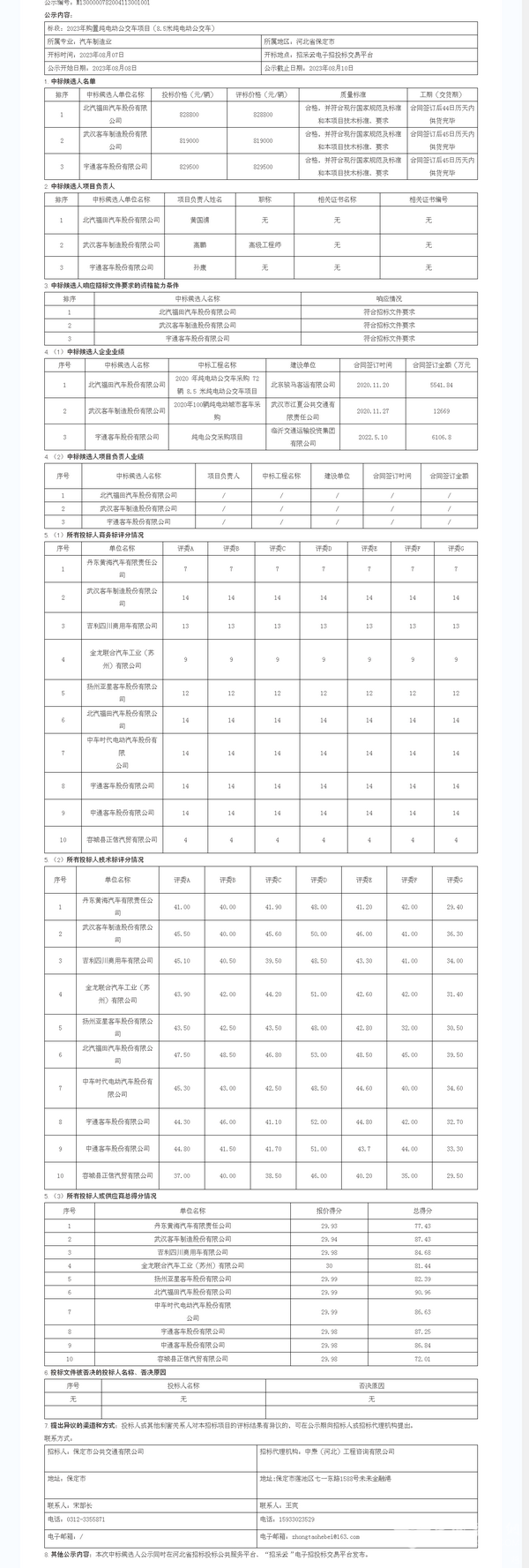 保定市公交2023年购置(8.5米纯电动公交车)项目中标候选人公示