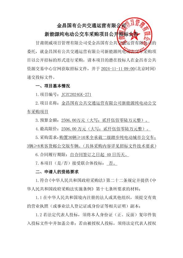 - 2025年购买30辆新能源纯电动公交车项目第一包中标结果公告