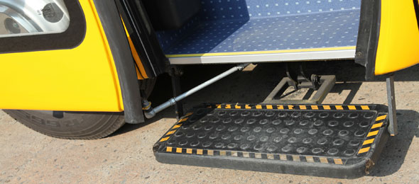 按国外校车设计,当学童上下车时,停车警示臂与乘客门同步打开,提示后方车辆注意避让,最大限度保障学童上下车安全。