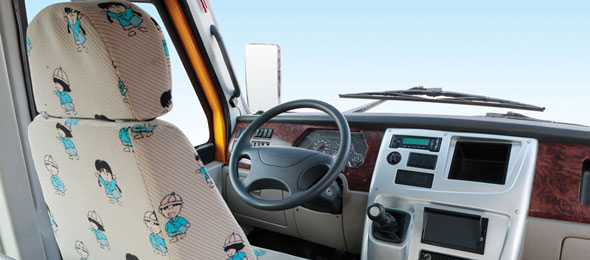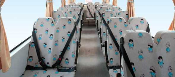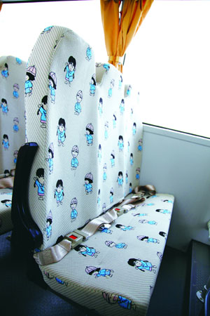 登上海格校车,我们可以看到软化扶手、三点式安全带、加厚椅背以及人性化座椅设计,这些安全防护设备可以有效避免学童在校车里发生意外伤害,保证学童乘车安全。