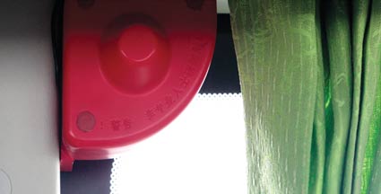 应急破玻逃生装置,通过线控或遥控启动装置,瞬间(0.1秒内)将玻璃"击碎",打开所有的车窗通道,使被困人员能够在第一时间通过窗口就近逃生。