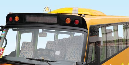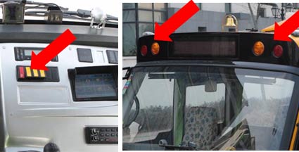 当学生上下车时,按下警示灯和铃铛的开关,警示灯闪烁,铃铛铃声响起,提醒过往车辆注意避让,同时提醒校车来了。