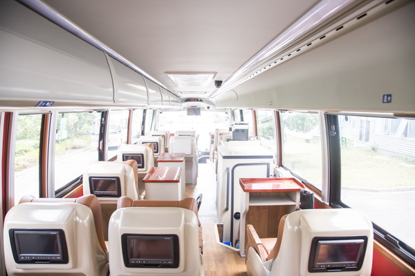 YBL6148H高端旅游客车给旅客更加舒适的乘坐体验,整车配备商务豪华座椅和独立影视系统,让旅途不再寂寞劳累;先进的空气净化系统,保证车内空气的优良品质,让旅客如沐春风;隐藏式遮阳帘,让旅途中随时享受阳光带来的乐趣;配备航空式行李架,让随身行李更加有序,避免视线所及的杂乱,再加上星空顶的布局以及独特的车内色彩搭配,使车内环境更加温馨、更加赏心悦目;车载独立卫生间、饮水机和冰箱等人性化配备,给旅客身处头等舱的尊享体验,享受更加惬意的美好时光。